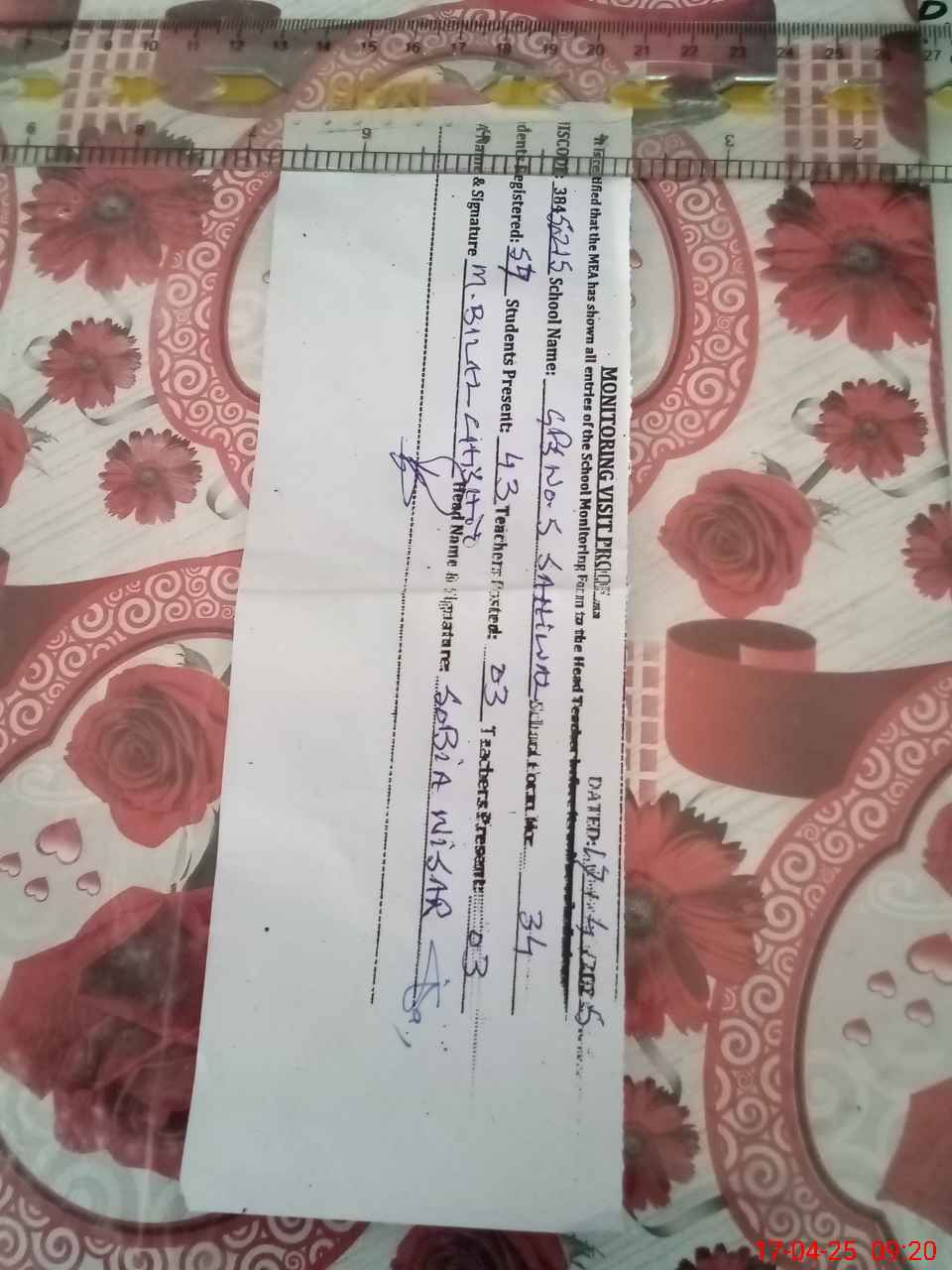 | Attendance Register | Head Teacher | MEA with School | Visit Proof |