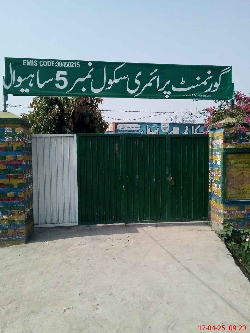 | EMIS Code: 38450215 | Name of School: GPS NO.5 SAHIWAL | |||