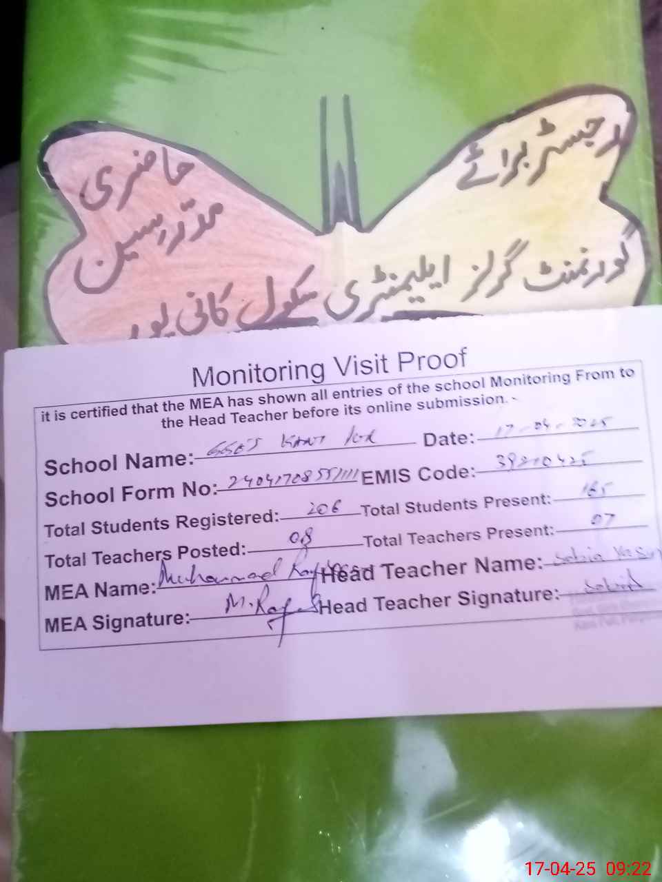 | EMIS Code: 39210425 | Name of School: GGES KANI PUR | |||