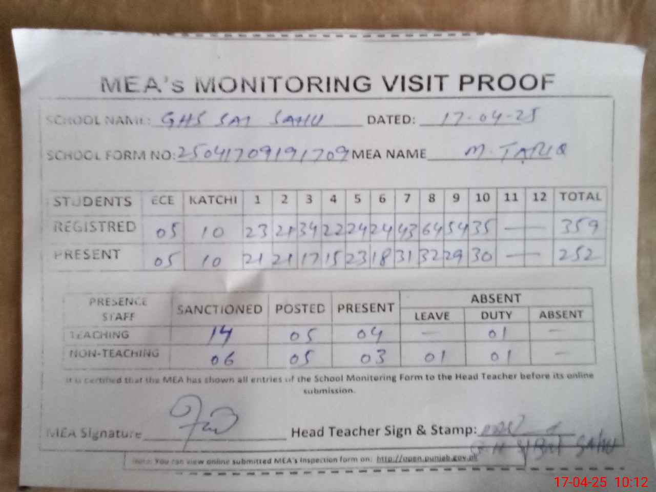 | EMIS Code: 36410075 | Name of School: GHS SAI SAHU ABDUL HAKIM | |||