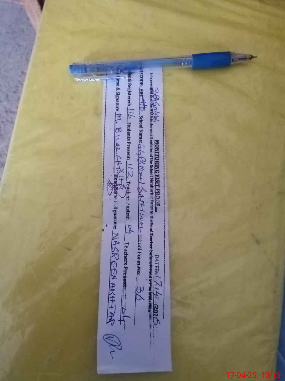 | Attendance Register | Head Teacher | MEA with School | Visit Proof |