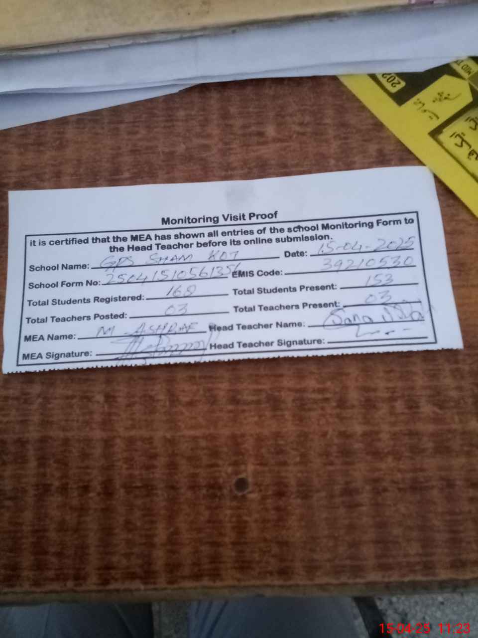 | EMIS Code: 39210530 | Name of School: GPS CHAK SHAM KOT | |||