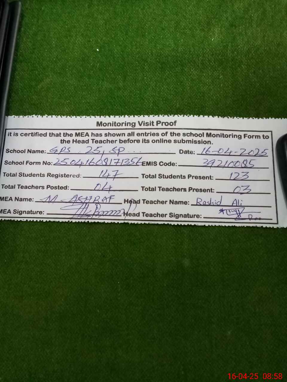 | EMIS Code: 39210085 | Name of School: GPS 25/SP PAKPATTAN | |||