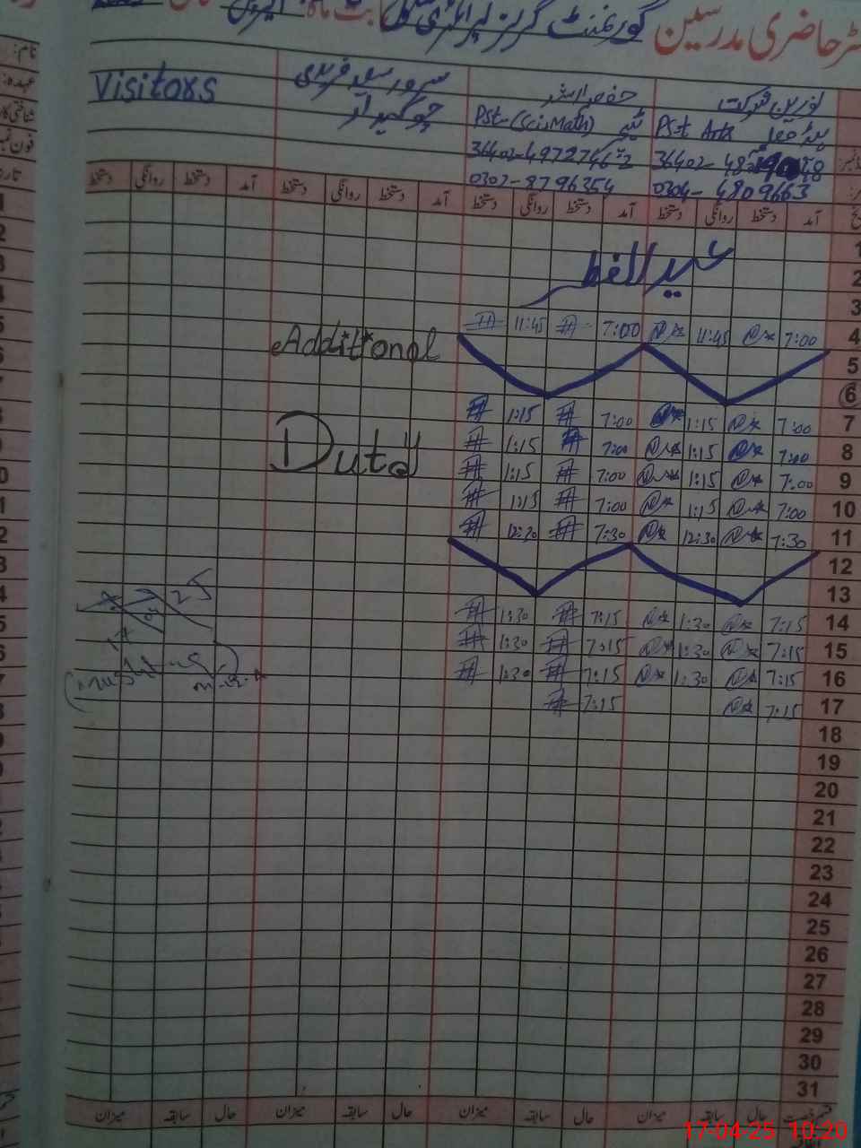 | Name: No**** sh**** Designation: (School Headmaster's/Headmistress's) PST Phone/Cell Number: 03**** |