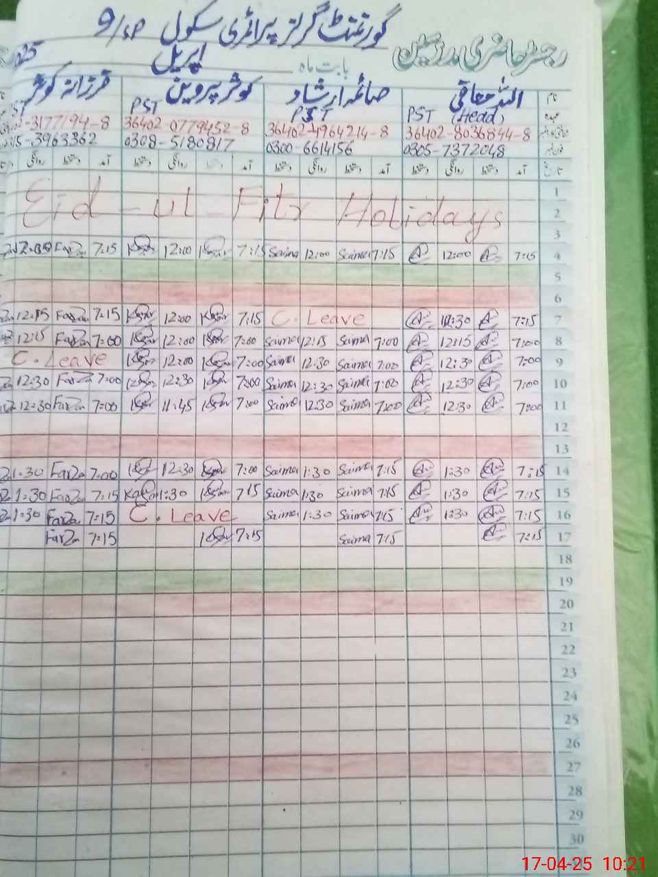 | Leave | Duty | Absent | Maternity | Medical | Ex- Pak |