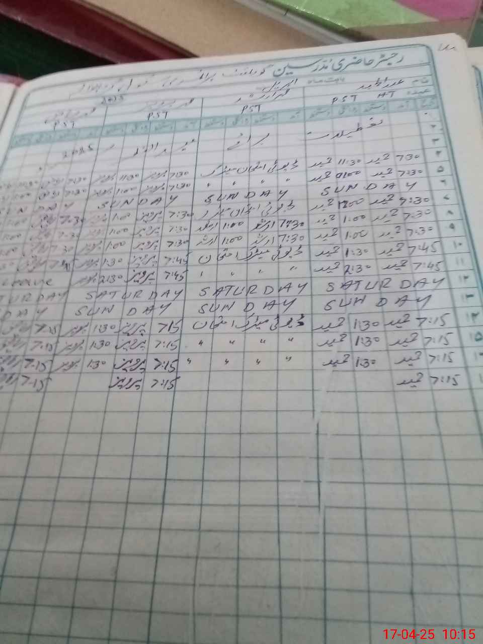 | 35**** | Mu**** Ar**** | PST | Regular | 0 | 0 | 0 | 0 | 0 | 0 | 0 | 0 | 0 | Exam Duty |