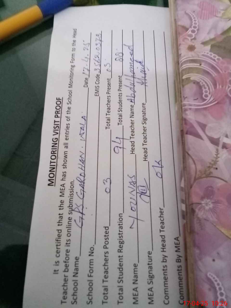 | EMIS Code: 35620373 | Name of School: GPS GAROHAN WALA | |||