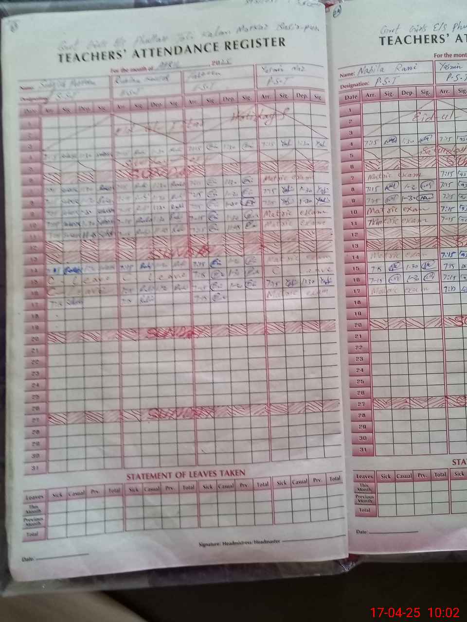 | 35**** | Ya**** Na**** | PST | Regular | 0 | 0 | 0 | 0 | 0 | 0 | 0 | 0 | 0 | Exam Duty |