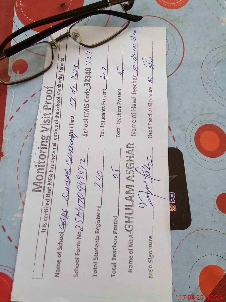 | EMIS Code: 32340333 | Name of School: GGPS QAISAR GHAZLANI | |||