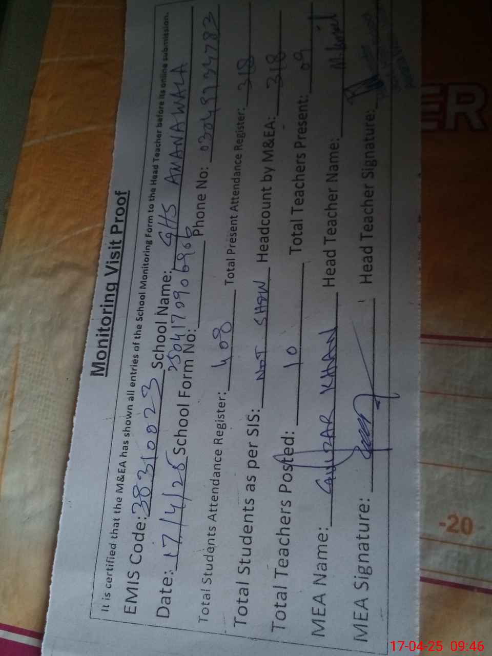 | EMIS Code: 38310023 | Name of School: GHS AWANAN WALA | |||