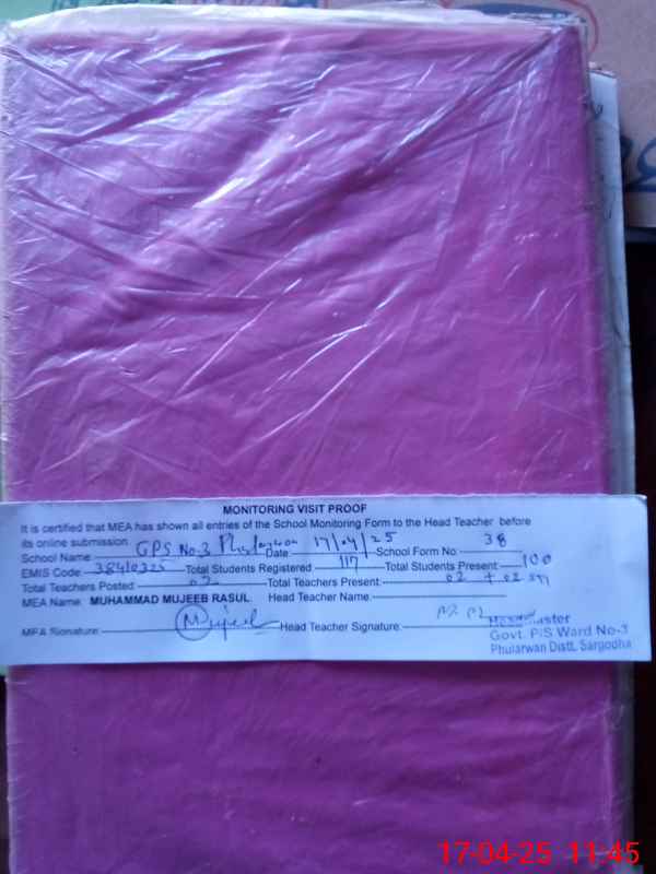 | EMIS Code: 38410325 | Name of School: GPS NO. 3 PHULARWAN | |||
