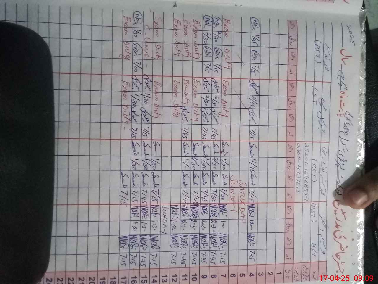 | 35**** | Mu**** Na**** | PST | Regular | 0 | 0 | 0 | 0 | 0 | 0 | 0 | 0 | 0 | Exam Duty |