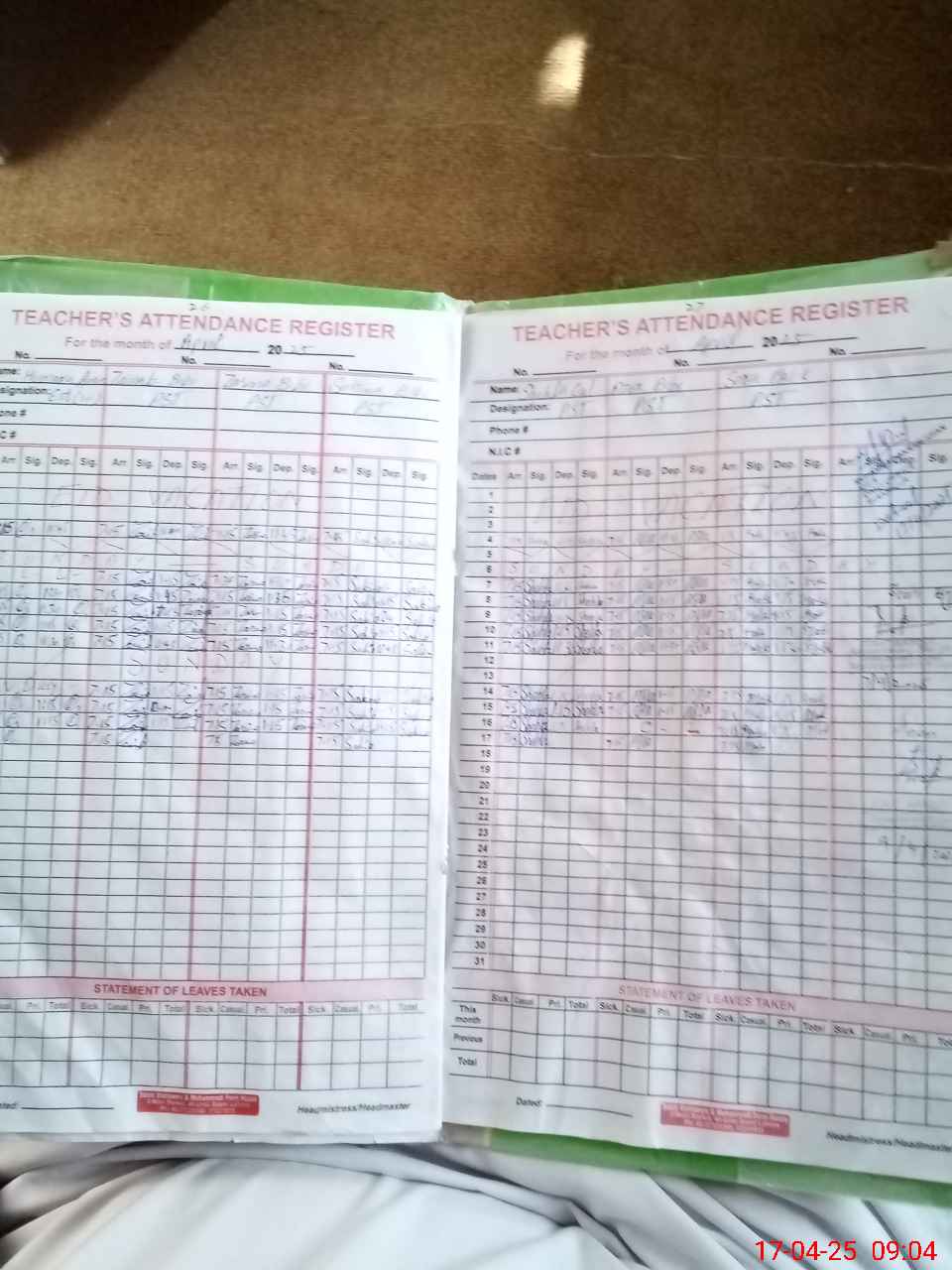 | Total no. of Classrooms: 7 No. of Classrooms Used for Teaching: 7 No. of Classrooms Storing Old Furniture, FTBs, etc: 0Comments if Any: Sir FTF record not maintain and no attendance on SIS |