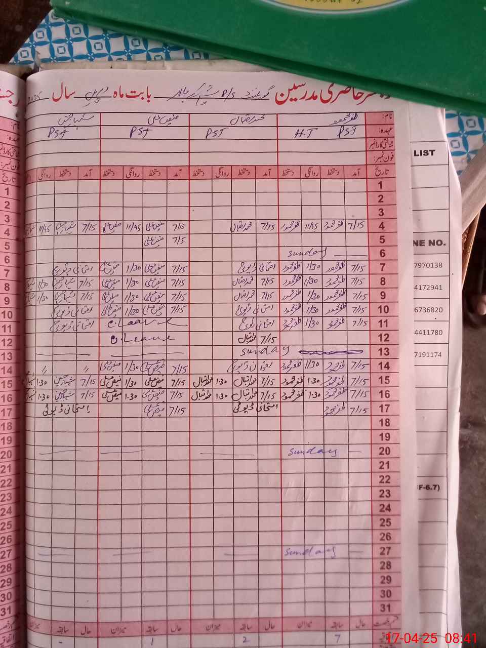 | Name: Za**** Ma**** Designation: (School Headmaster's/Headmistress's) PST Phone/Cell Number: 03**** |