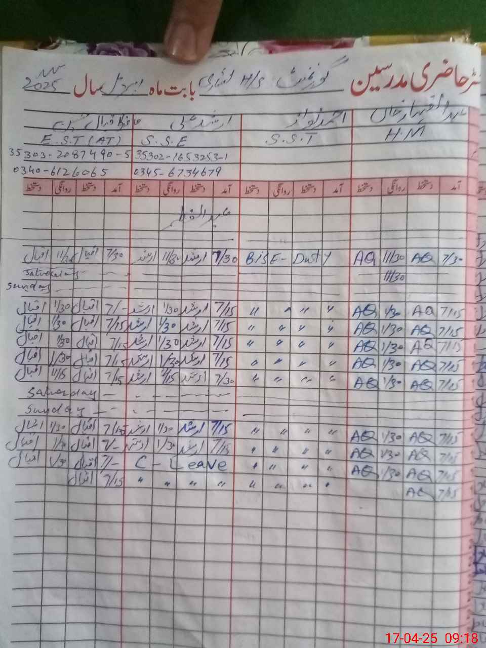 | 35**** | Ah**** Na**** | Regular | 0 | 9 | 0 | 0 | 0 | 0 | 0 | 0 | 0 | Exam Duty | |