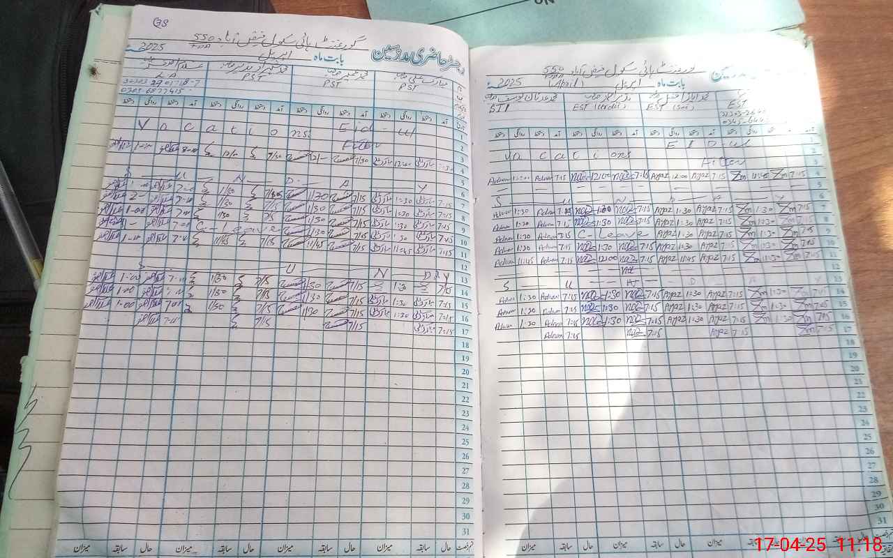 | CNIC | Full Name | Designation | R/C | Absence During Last Calender Month |