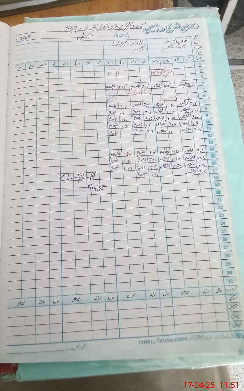 | CNIC | Full Name | Designation | R/C | Absence During Last Calender Month |