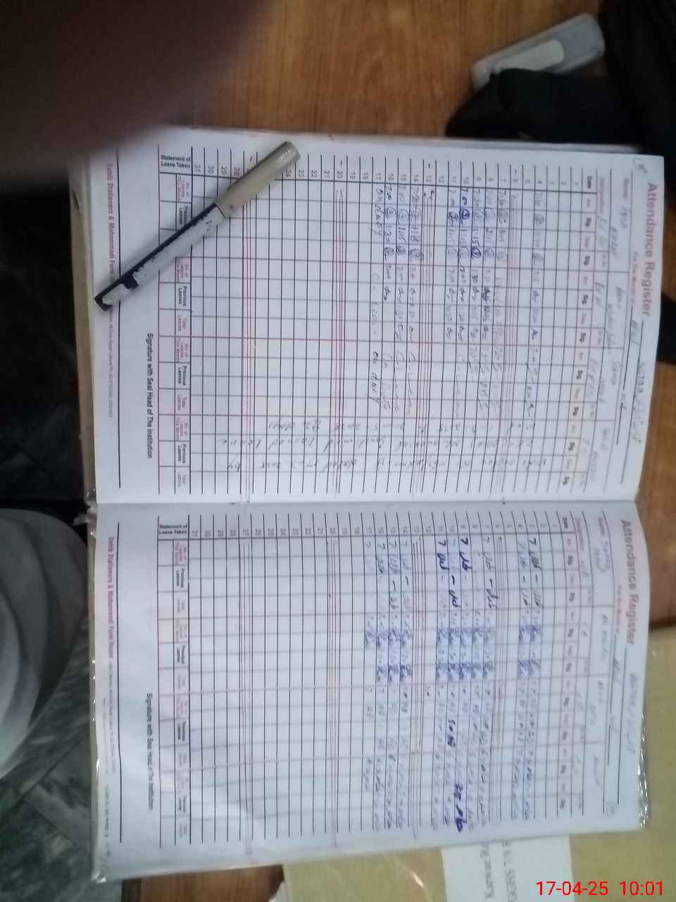 | CNIC | Full Name | Designation | R/C | Absence During Last Calender Month |