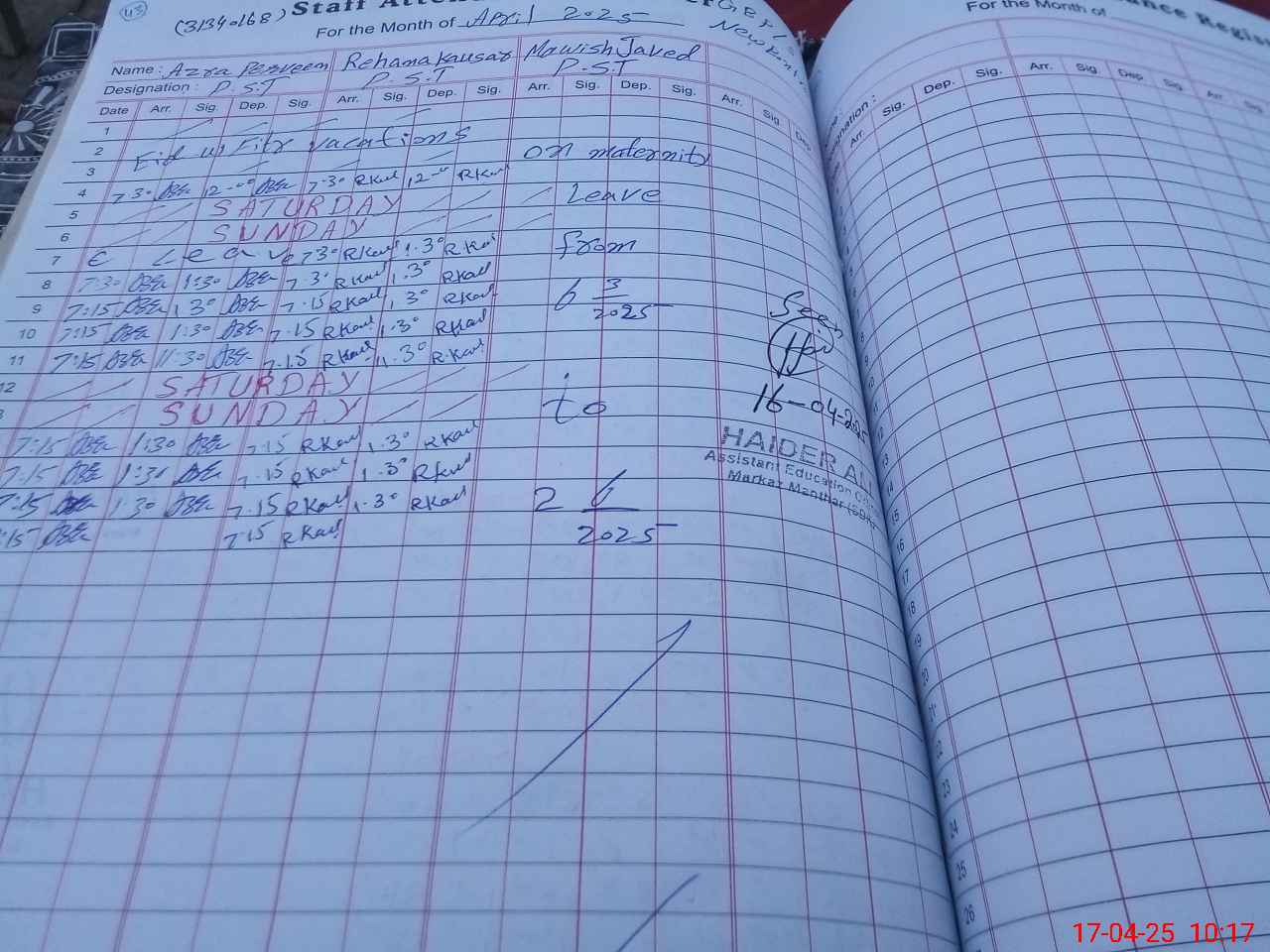 | Name: Az**** Pa**** Designation: (School Headmaster's/Headmistress's) PST Phone/Cell Number: 03**** |