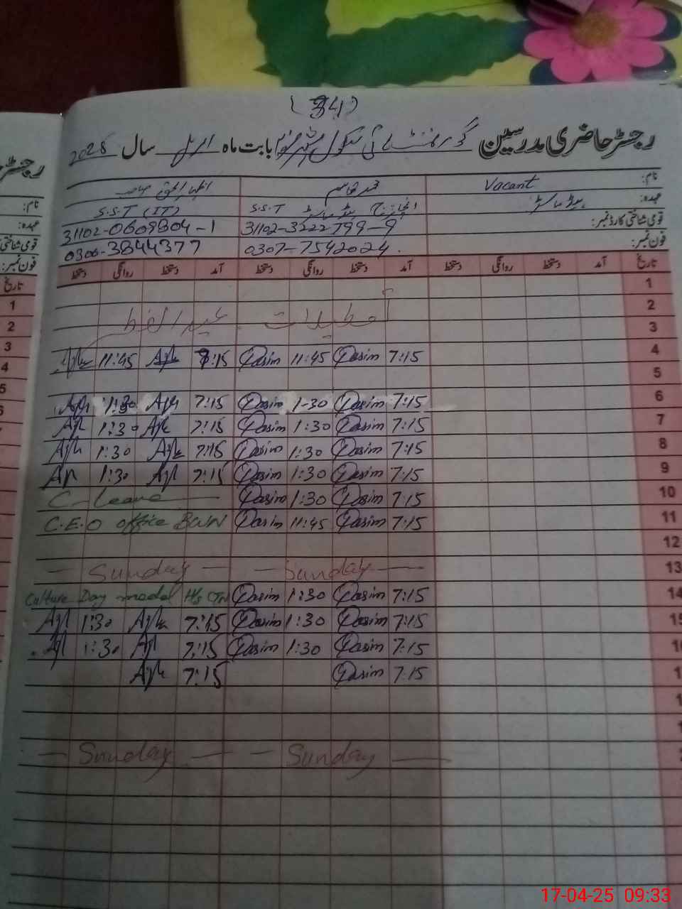 | Name: Mu**** Qa**** Designation: (School Headmaster's/Headmistress's) Sst Phone/Cell Number: 03**** |