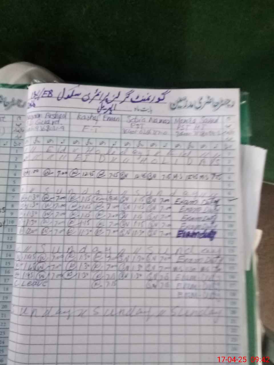 | 36**** | Ma**** Sa**** | PST | Regular | 0 | 17 | 0 | 0 | 0 | 0 | 0 | 0 | 0 | Exam Duty |