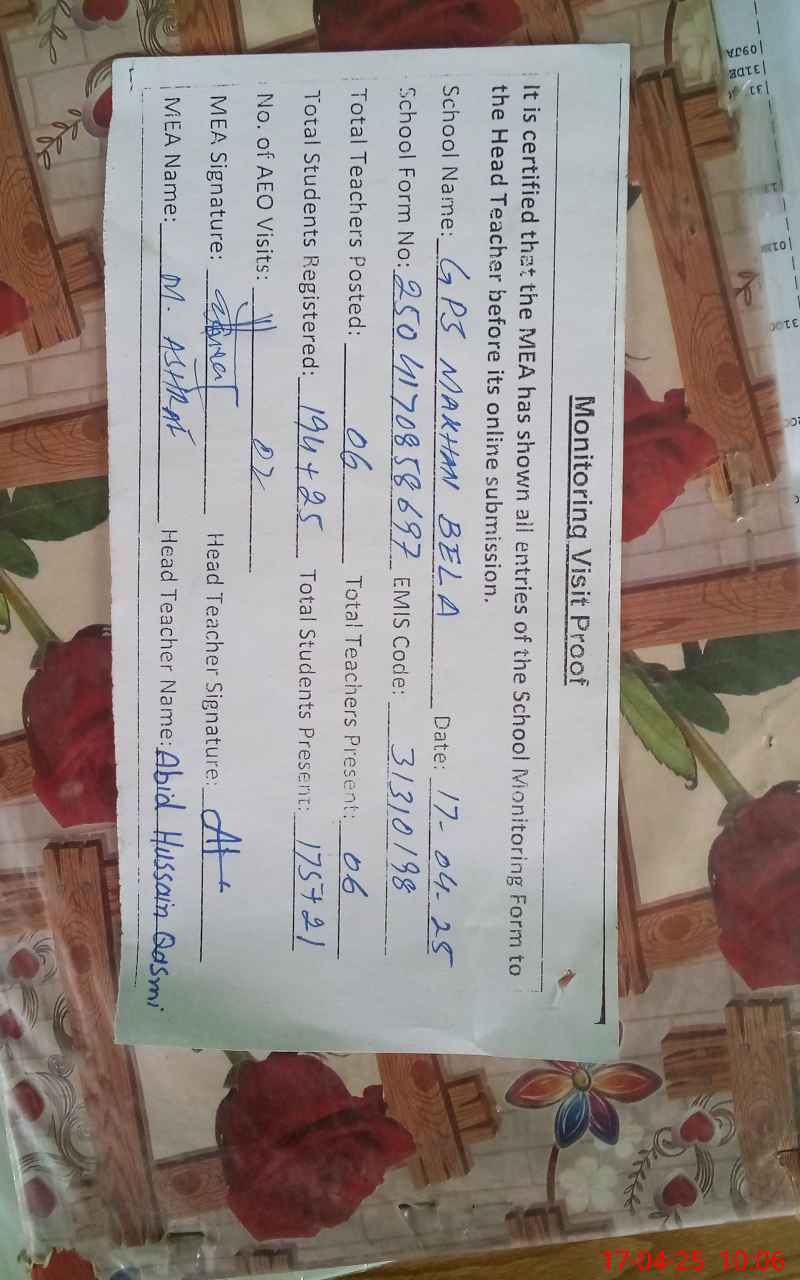 | EMIS Code: 31310198 | Name of School: GPS MAKHAN BELA (After Noon) | |||