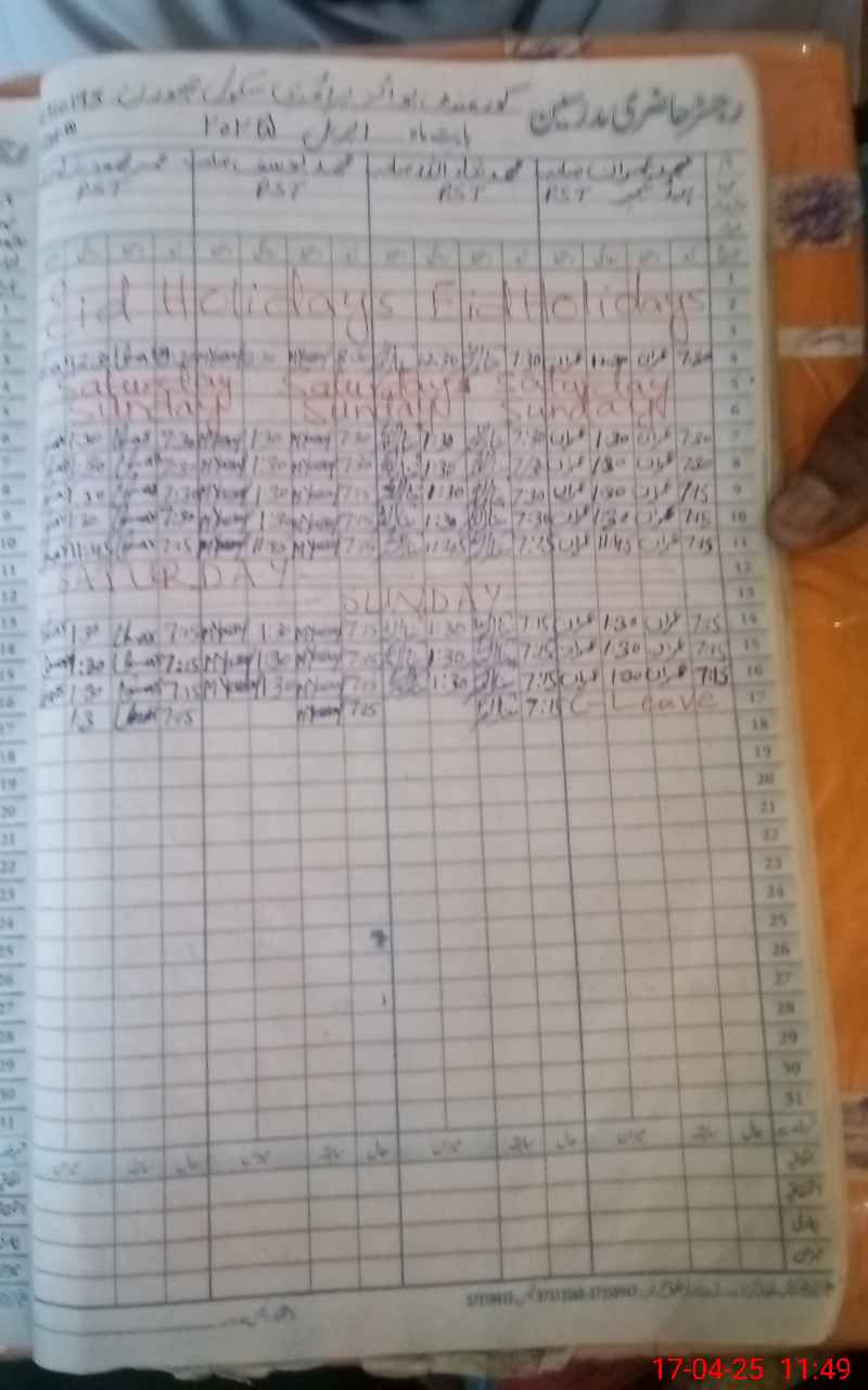 | CNIC | Full Name | Designation | R/C | Absence During Last Calender Month |