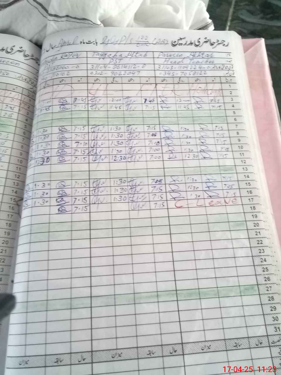| CNIC | Full Name | Designation | R/C | Absence During Last Calender Month |