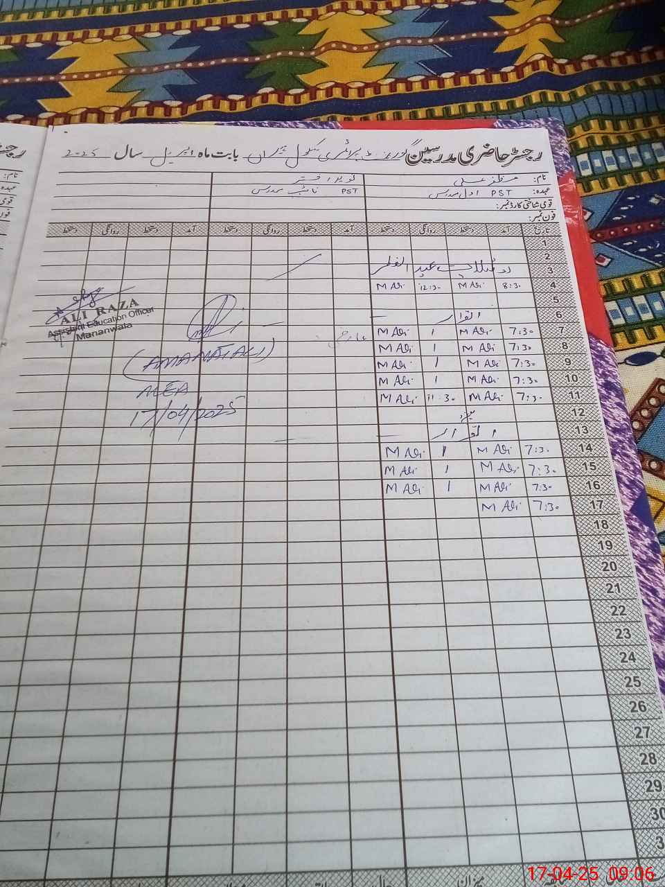 | Name: Mu**** Al**** Designation: (School Headmaster's/Headmistress's) PST Phone/Cell Number: 03**** |