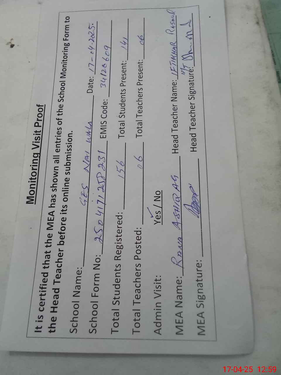 | EMIS Code: 34120609 | Name of School: GES NAI WALA | |||