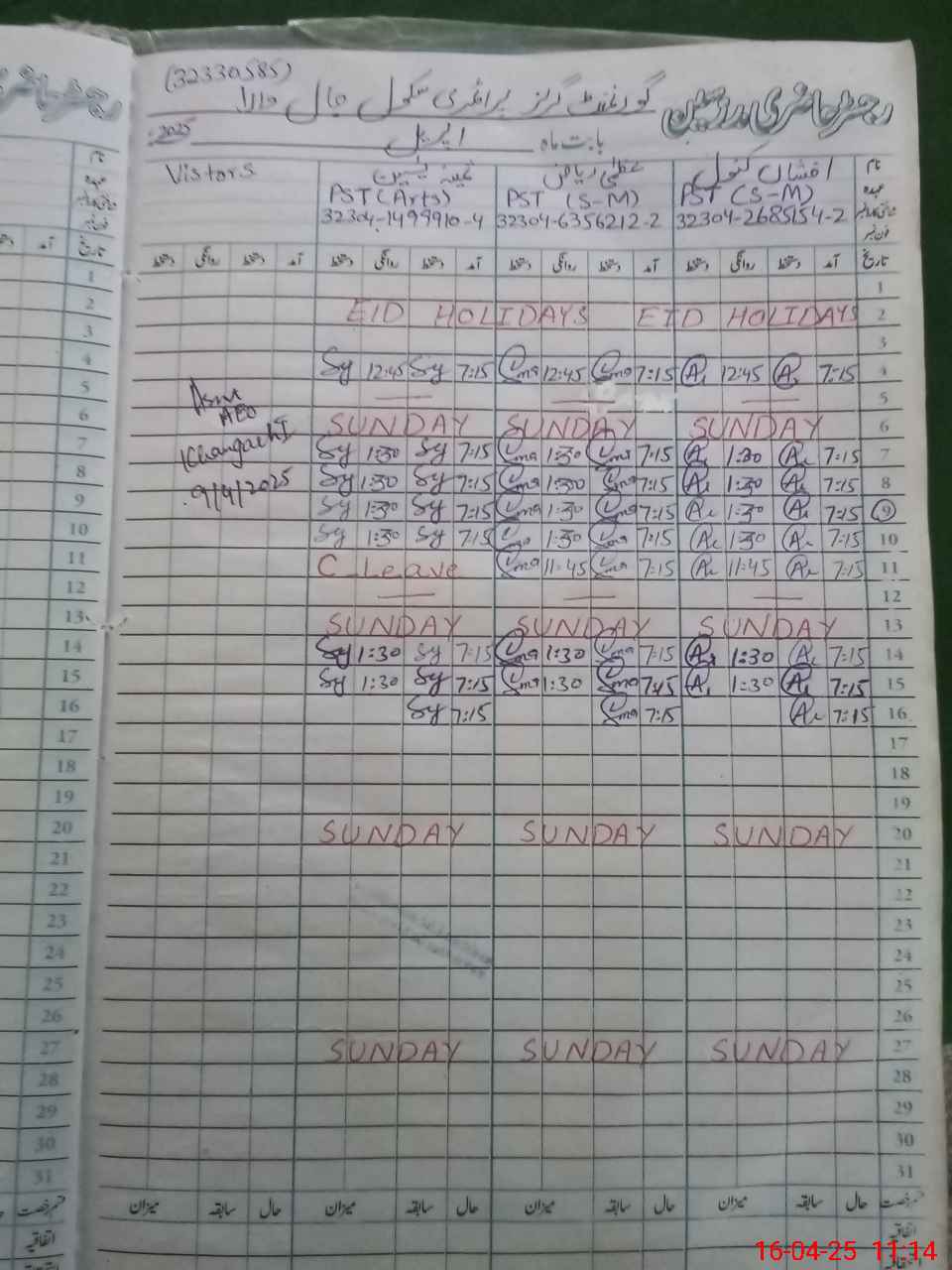 | Name: UZ**** RI**** Designation: (School Headmaster's/Headmistress's) PST Phone/Cell Number: 03**** |