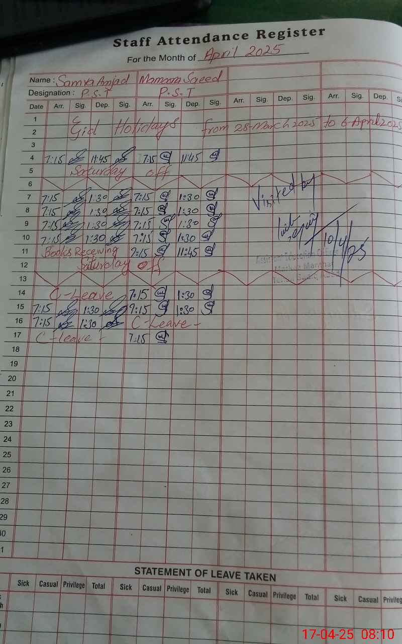 | 31**** | Sa**** Am**** | 1 | 1 | 0 | 0 | 0 | 0 | 0 | 0 | 0 | 1 | Absent (Un-Authorized) | |