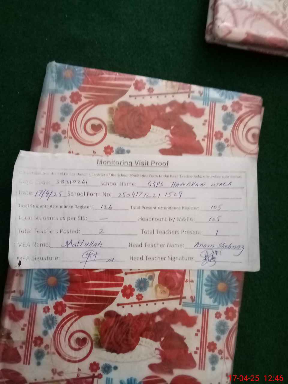 | EMIS Code: 38310261 | Name of School: GGPS HANBRAN WALA | |||