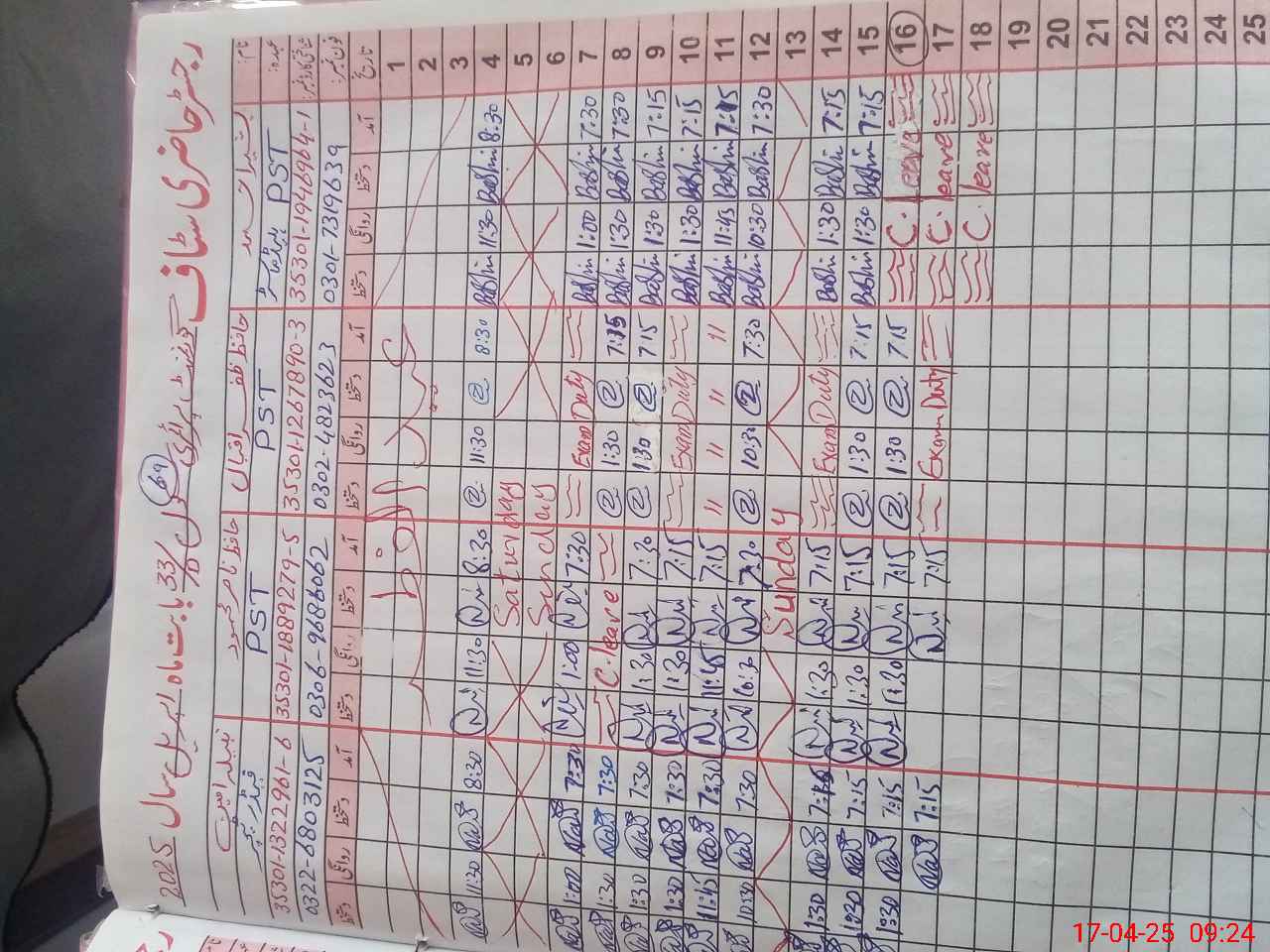 | 35**** | Ha**** Za**** Iq**** | 1 | 0 | 1 | 0 | 0 | 0 | 0 | 0 | 0 | 0 | Exam Duty | |