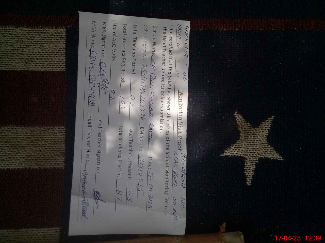 | EMIS Code: 31310635 | Name of School: GPS QAZI GHULAM RASOOL | |||