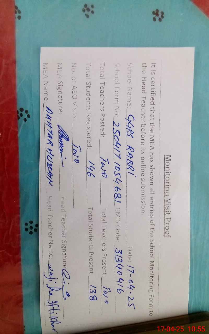 | EMIS Code: 31340416 | Name of School: GGPS RABRI | |||