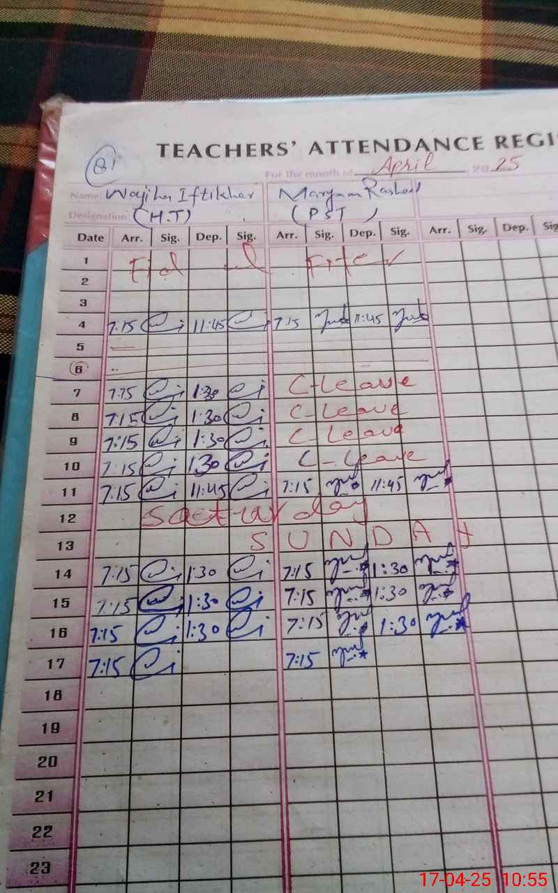 | Name: Wa**** IF**** Designation: (School Headmaster's/Headmistress's) PST/PTC/JV Phone/Cell Number: 03**** |