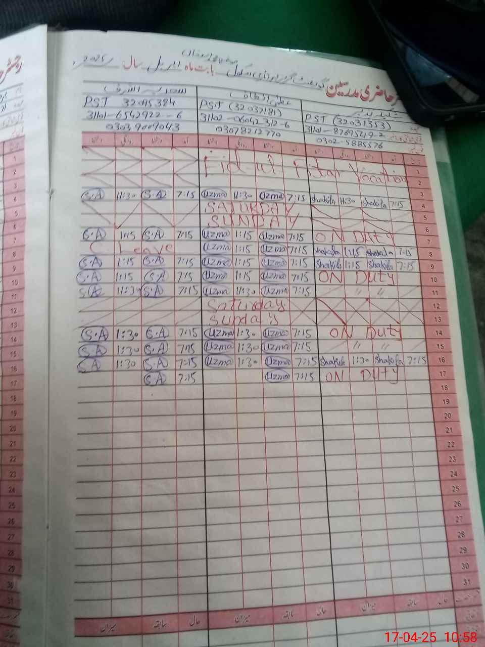 | 31**** | Sh**** Na**** | PST | Regular | 0 | 0 | 0 | 0 | 0 | 0 | 0 | 0 | 0 | Exam Duty |