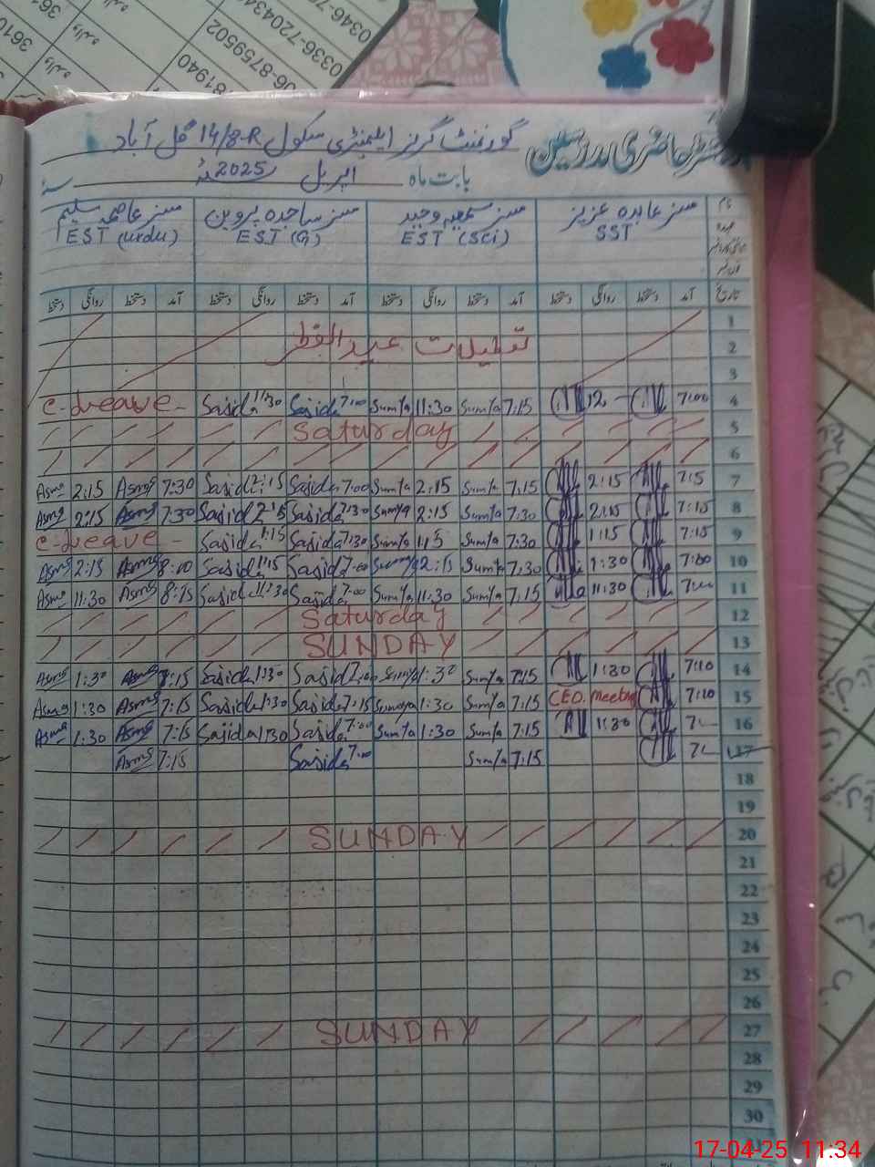 | 36**** | Sa**** Ba**** | PST | Regular | 0 | 0 | 0 | 0 | 0 | 0 | 0 | 0 | 0 | Exam Duty |