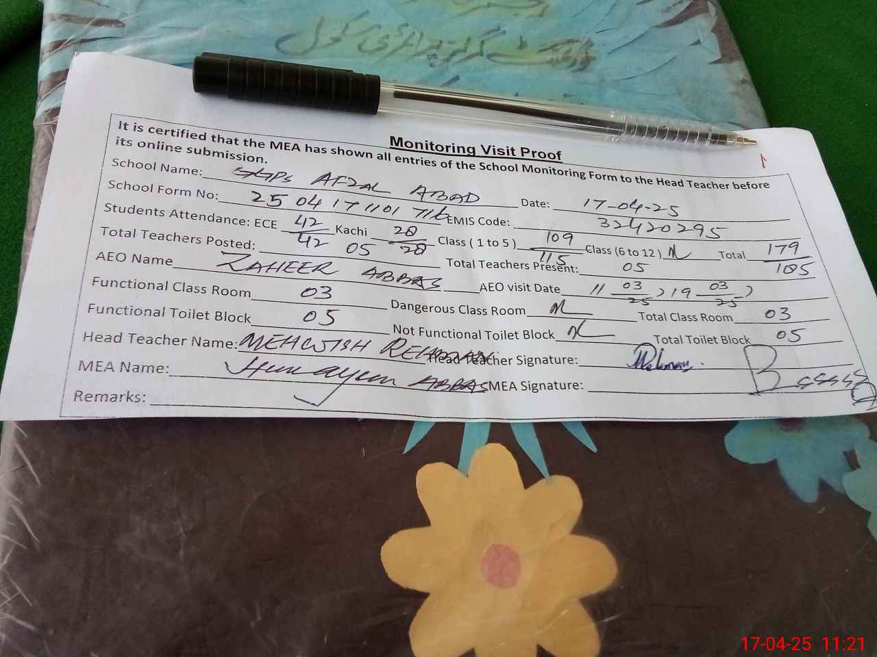 | EMIS Code: 32420295 | Name of School: GGPS AFZAL ABAD | |||
