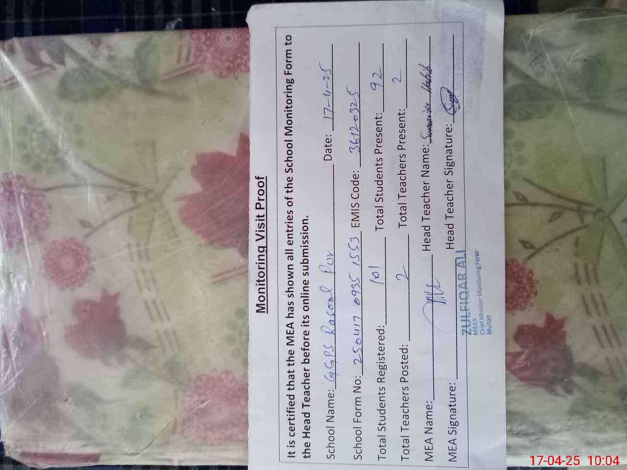 | EMIS Code: 36120325 | Name of School: GGPS RASOOL PUR MARI | |||