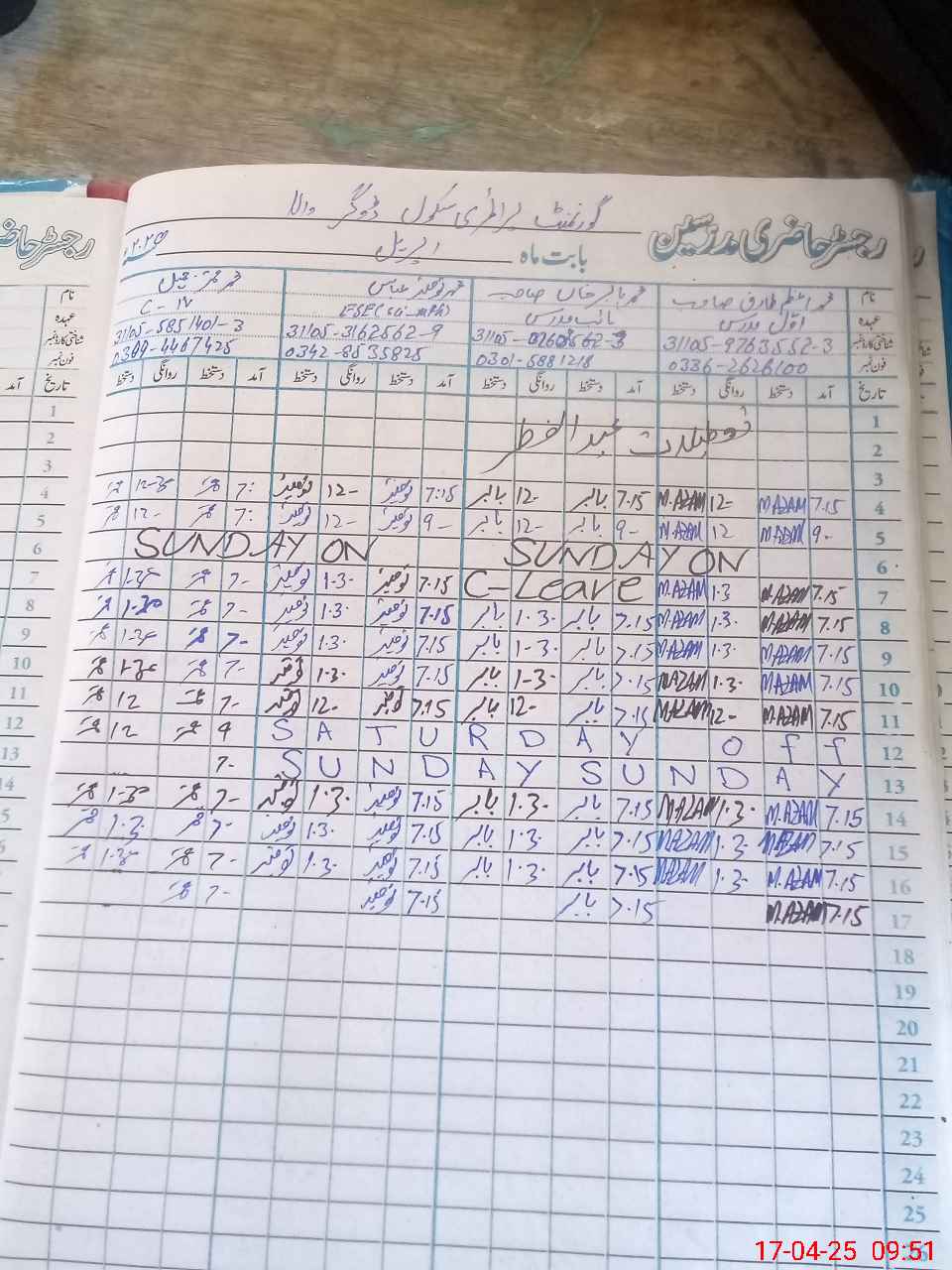 | CNIC | Full Name | Designation | R/C | Absence During Last Calender Month |