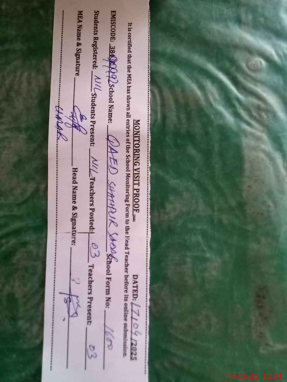 | EMIS Code: 38499992 | Name of School: QAED SHAHPUR SADAR | |||