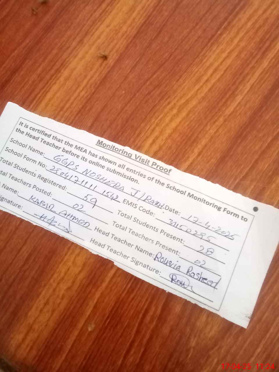 | EMIS Code: 31150295 | Name of School: GGPS NOSHERA JANGLE RAKH | |||