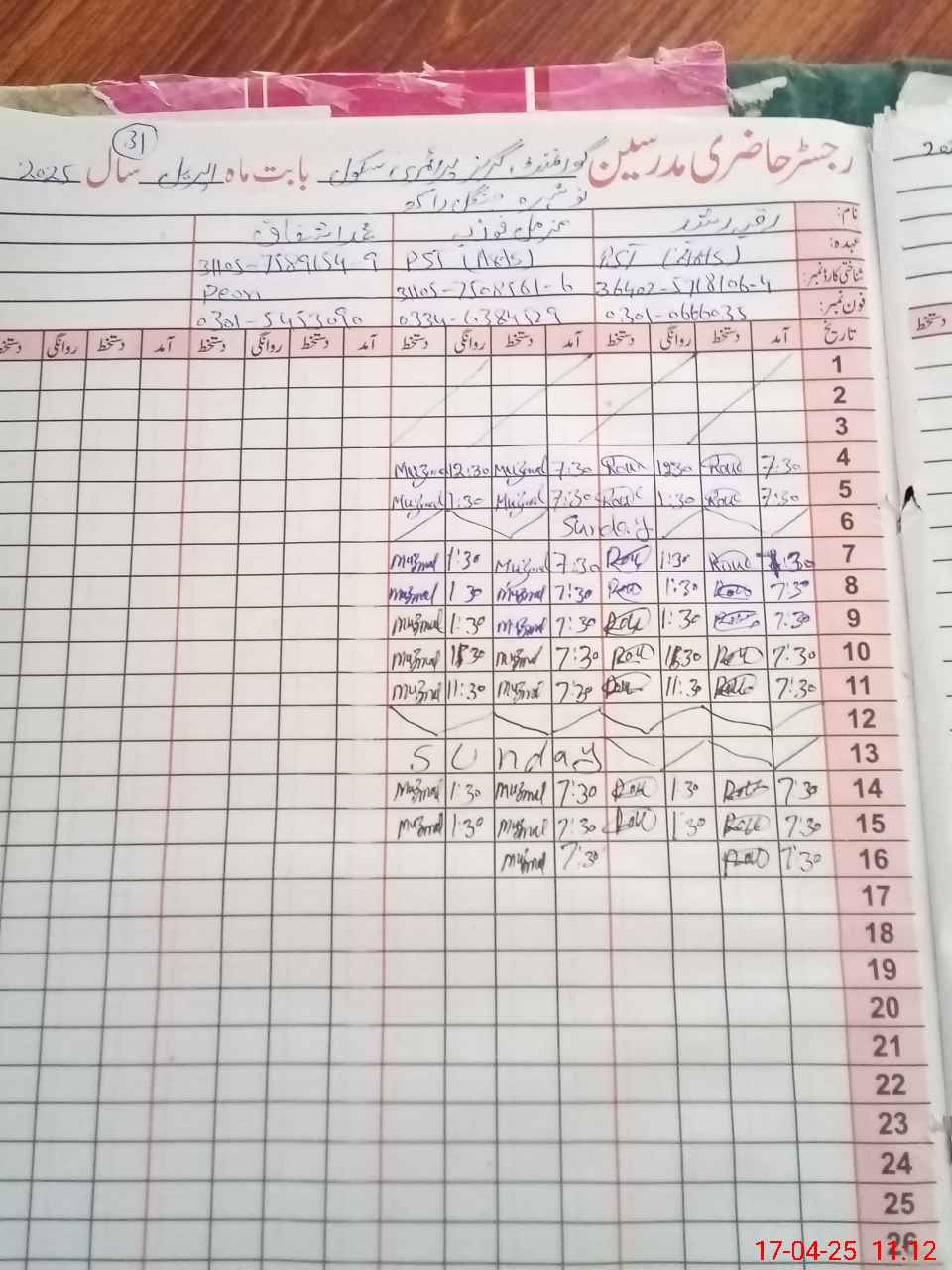 | Name: Ru**** Ra**** Designation: (School Headmaster's/Headmistress's) PST Phone/Cell Number: 03**** |