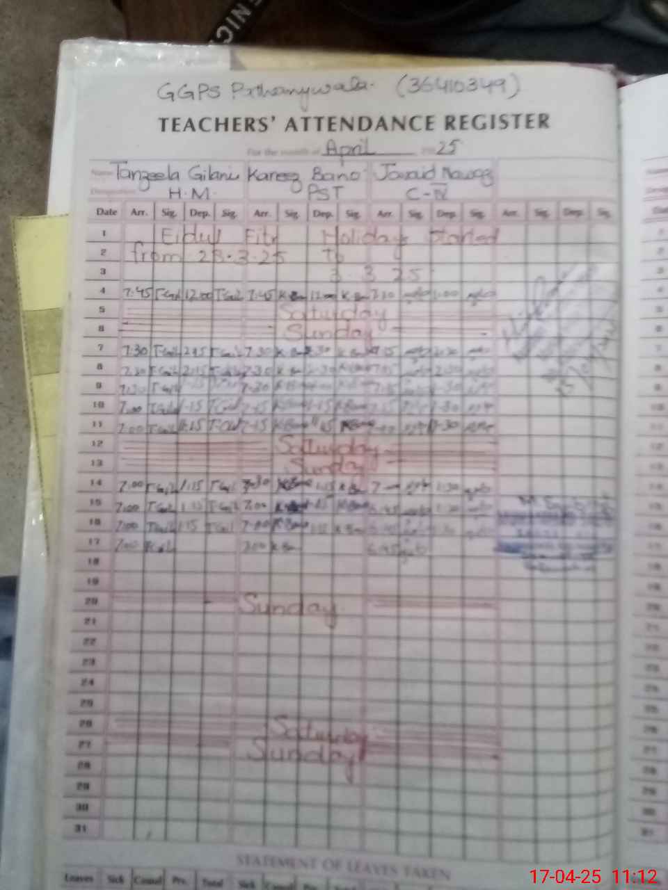 | EMIS Code: 36410349 | Name of School: GGPS PATHANEY WALA, KABIRWALA | |||