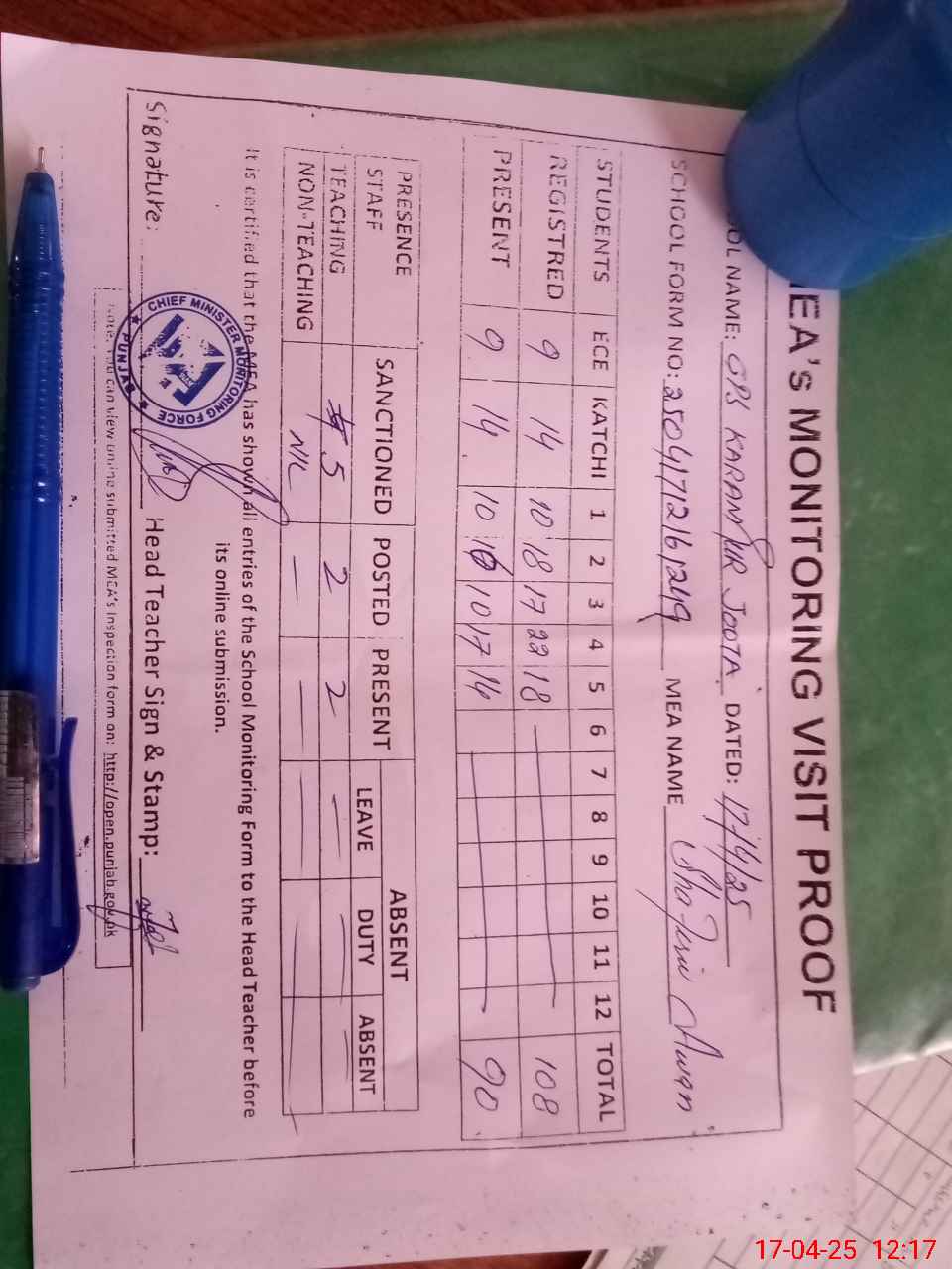 | EMIS Code: 36410199 | Name of School: GPS KARAM PUR JOOTA, P/O KUKKAR HATTA, KABIRWALA | |||