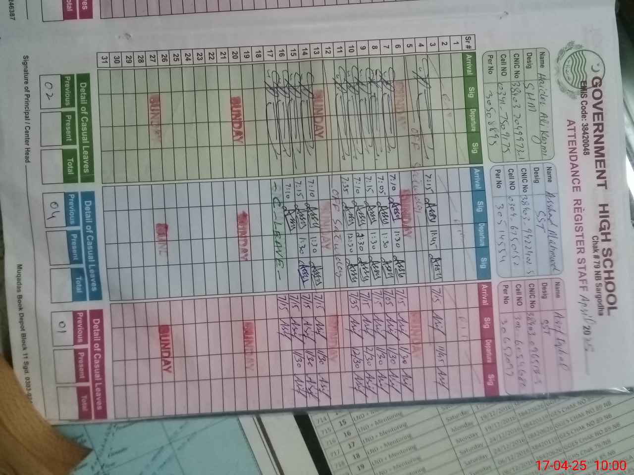 | Name: HA**** AL**** KA**** Designation: (School Headmaster's/Headmistress's) Sr. HEADMASTER Phone/Cell Number: 03**** |