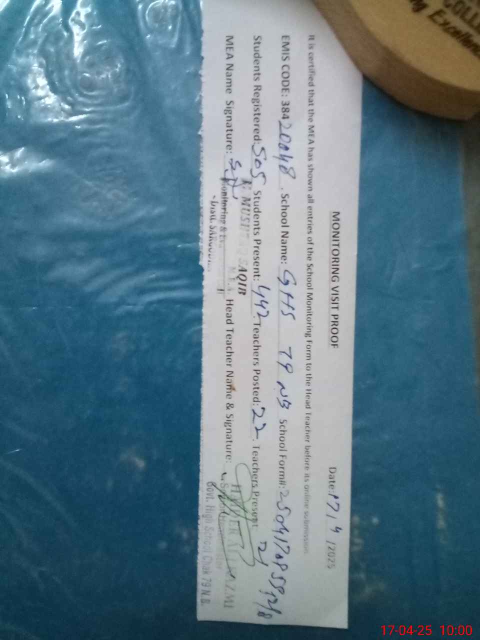 | EMIS Code: 38420048 | Name of School: GHS CHAK NO.79 NB SARGODHA | |||
