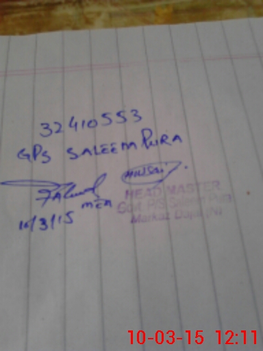 | EMIS Code: 32410553 | Name of School: GPS SALEEM PURA | |||